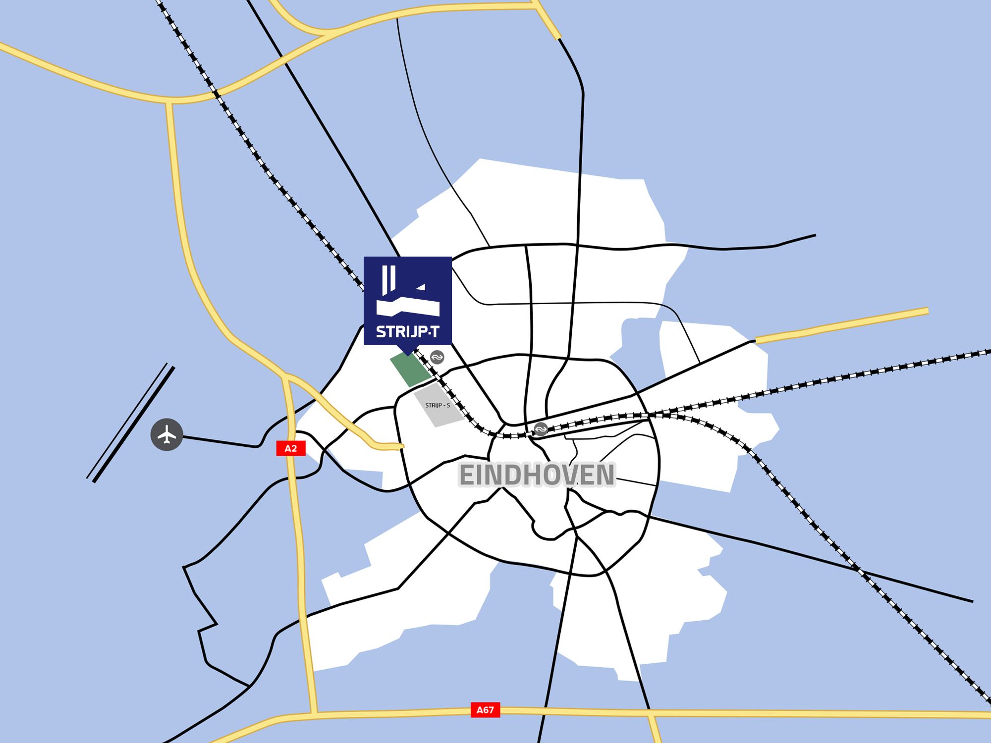 De ligging van Strijp-T is strategisch, namelijk in het hart van Brainport; één van de drie mainports van Nederland, dichtbij de binnenstad en naast Strijp-S. Het gebied is perfect bereikbaar dankzij een treinstation voor de deur, een vliegveld om de hoek en een korte afstand tot de snelweg. Met duidelijke signing vind je er snel de weg en dankzij de vele parkeervoorzieningen verspreid over het terrein is het nooit ver lopen naar je bestemming.